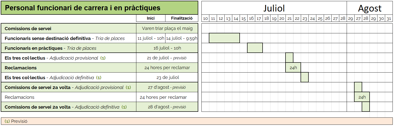 - Les persones que siguin desplaçades per un funcionari de carrera de la seva plaça de 3 anys tendran prioritat al tràmit de l’estiu.