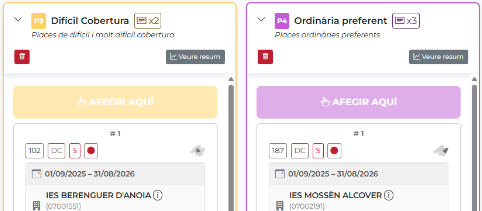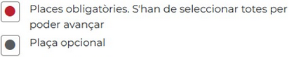 - Flexibilitat: si s’hi participa s’hauran de posar totes les places de les nostres opcions, però es podran ordenar entre preferents i no preferents. Les no preferents sempre s’adjudicaran després d’haver intentat adjudicar-les a tothom que les hagi seleccionat com a preferents. Les places que no siguin de les nostres opcions són voluntàries.