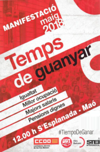 És per això que et convidam a participar a la manifestació d’aquest Primer de Maig, a Palma i a Maó. L’èxit de la manifestació i el missatge que en pot sortir depèn de cadascun de nosaltres.
