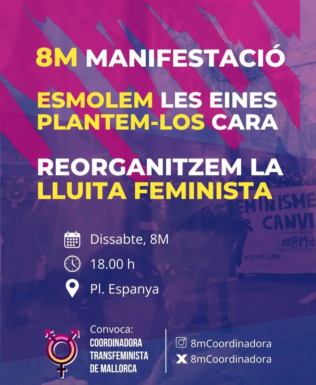 Des que es van començar a comptar l’any 2003, a les Illes Balears 43 dones, 1.331 al conjunt de l’Estat espanyol, han estat assassinades a mans d’homes. Però això és només la punta de l’iceberg d’una realitat estructural que travessa la nostra societat. No només vivim una quantitat insuportable de feminicidis; les dones patim diferents formes de violència masclista: psicològica, econòmica, ambiental, de segon ordre, física, sexual, vicària, obstètrica i de vulneració de drets sexuals i reproductius, digital... Les violències masclistes s’exerceixen de diverses maneres, en diferents espais i des de diferents àmbits. De vegades amb una evidència brutal, d’altres de forma oculta i sibil·lina. Les violències masclistes les vivim en plural.