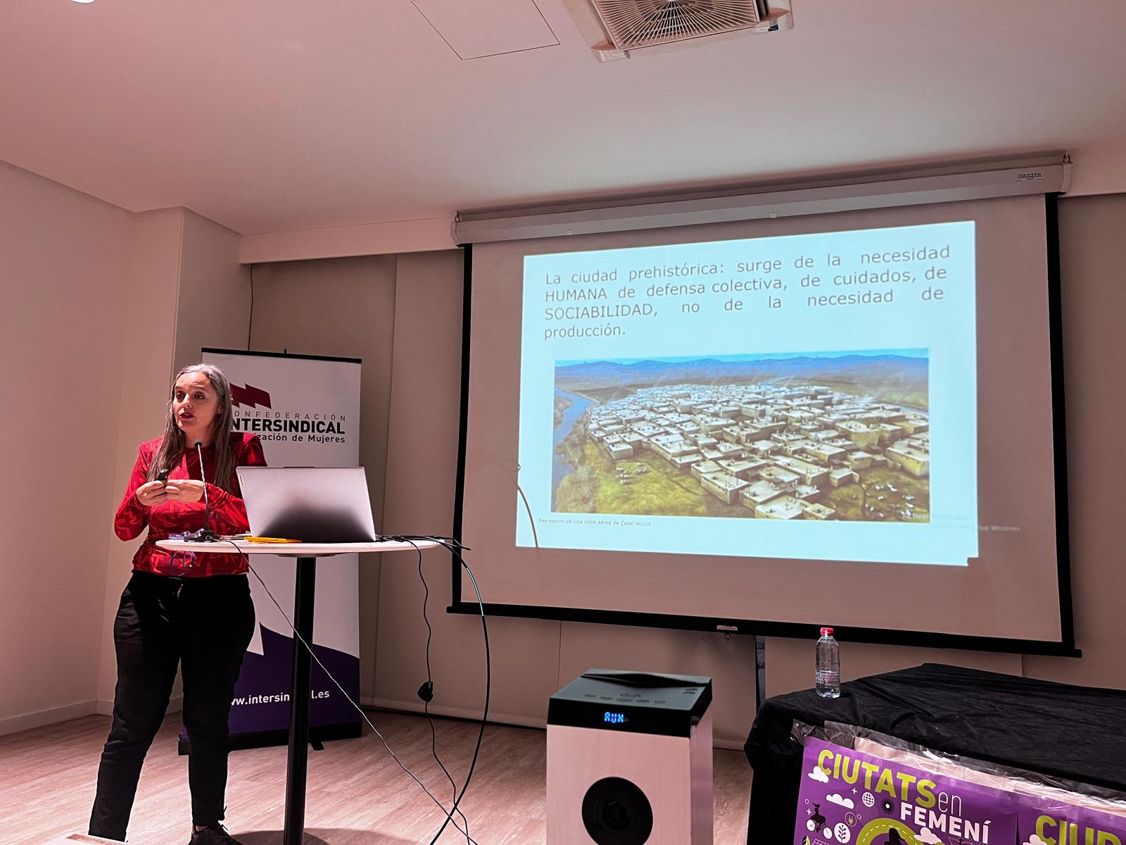 L'horabaixa de dissabte va tenir lloc la ponència de Pepa Domínguez Jaime, arquitecta, titulada, “Una mirada feminista sobre la construcció de la ciutat”.
