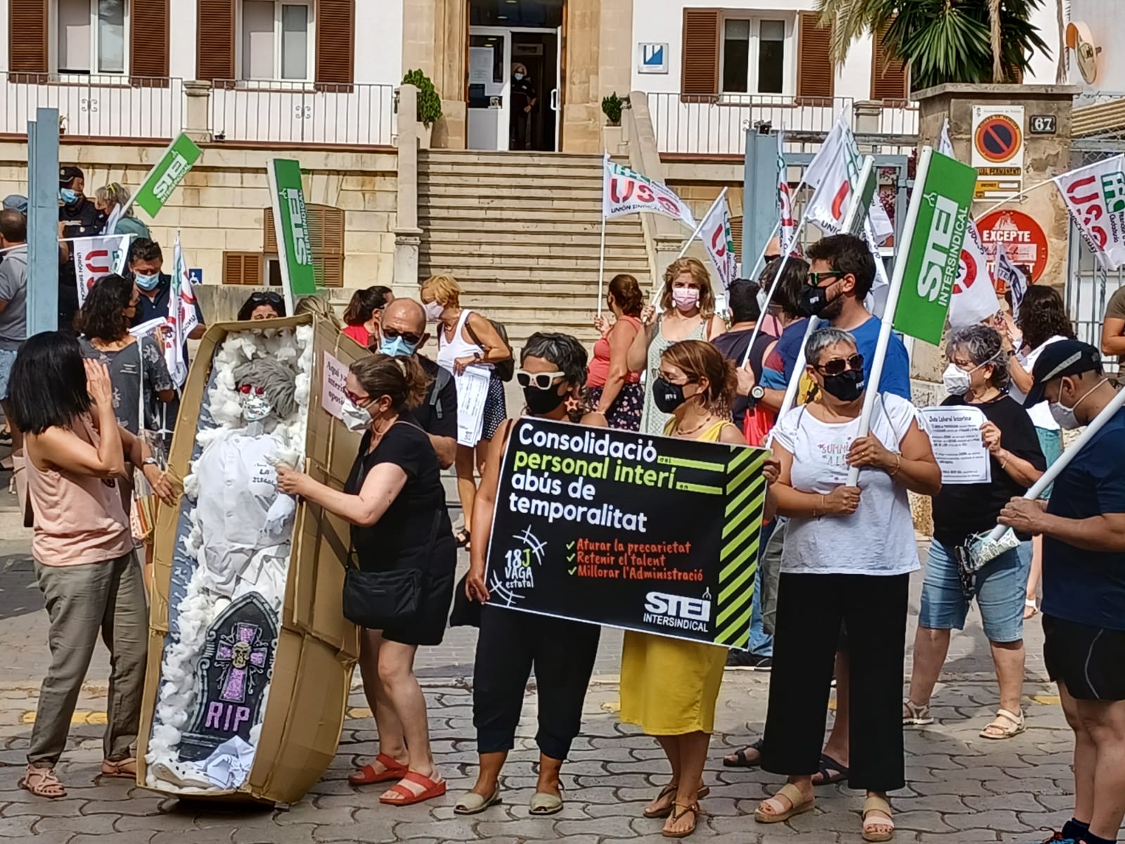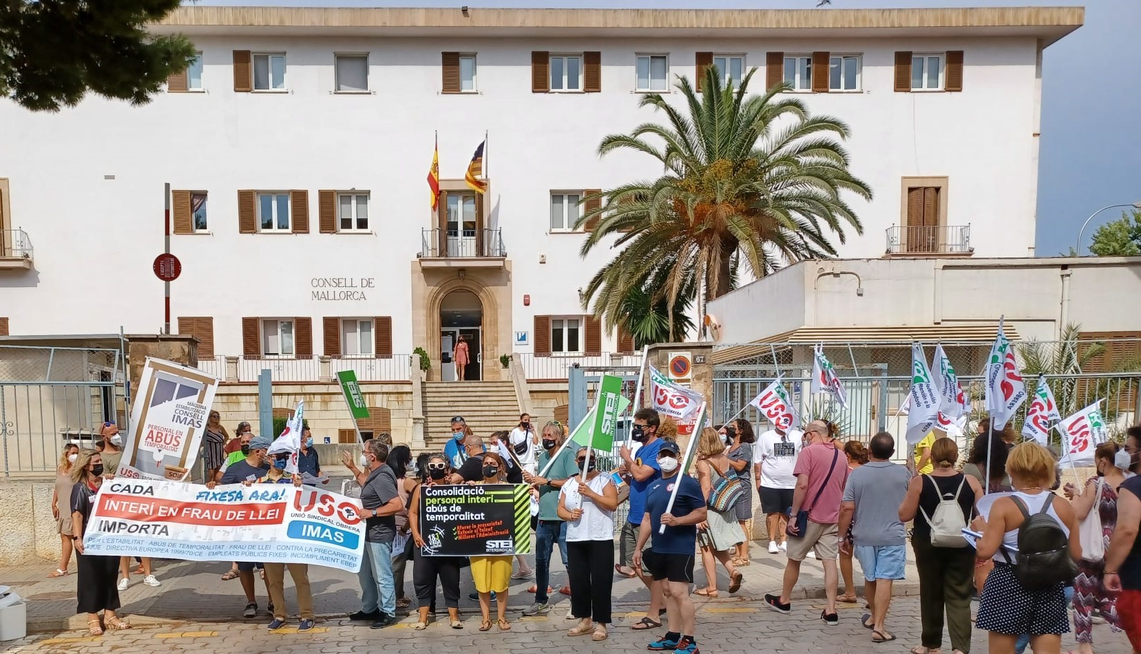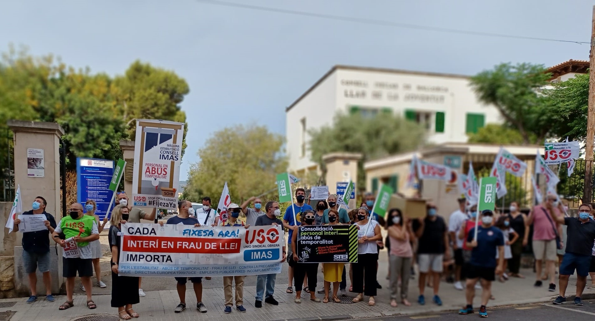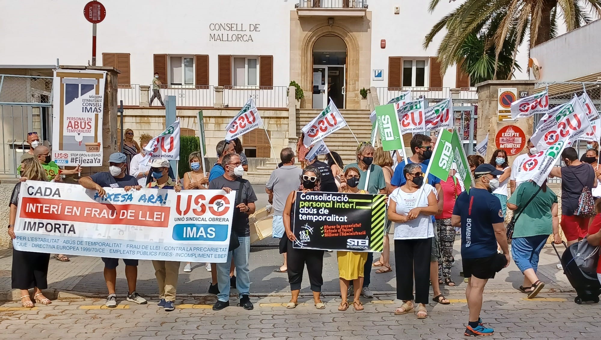 El 26 de juliol STEI i USO varen dur a terme una manifestació davant les seus del Consell de Mallorca i l'IMAS per a reivindicar l'estabilitat del personal interí en abús de temporalitat. Un centenar de persones varen participar en la protesta.
