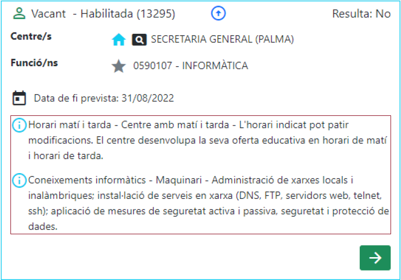 - Si no poses totes les places de les funcions excloses per català la Conselleria te les afegirà d'ofici a aquesta fase, després de les que sí hagis seleccionat.