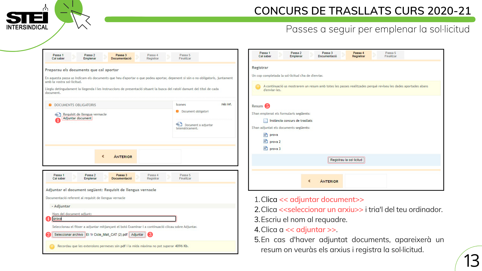 El tràmit enguany és totalment telemàtic. Ves a http://www.stei.cat/publica/concurs per fer-lo. Un cop has finalitzat correctament l’assistent, si no has d’aportar res, ja l’has acabat.