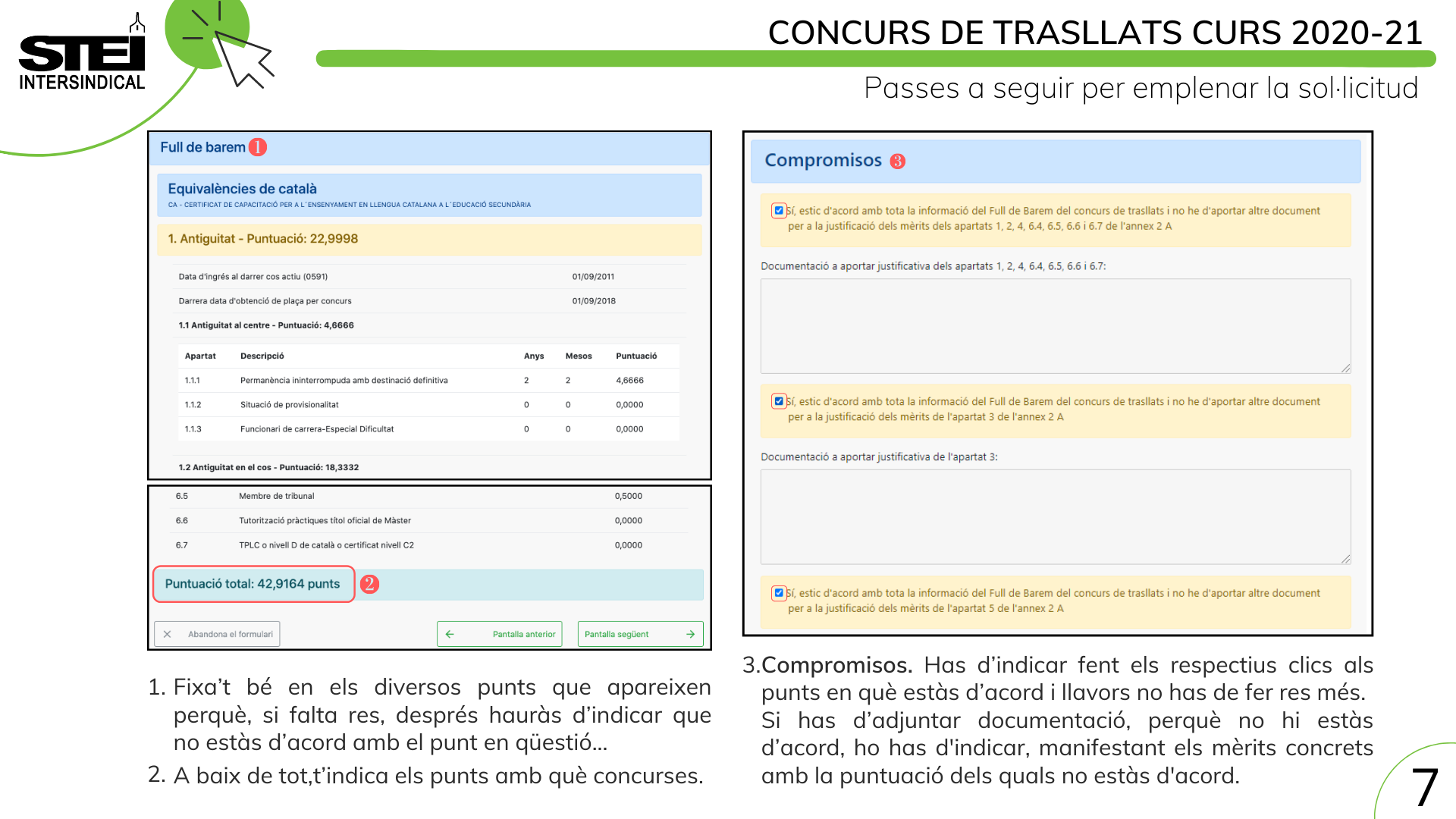 En la mateixa instància del concurs, et donarà compte dels punts que tens als diferents apartats i, a baix de tot, la quantitat total de punts amb què concurses.