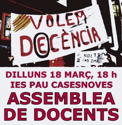 Dilluns, 18 de març, quedam totes i tots convocats a l'IES Pau Casesnoves d'Inca, a les 18h, a l'assemblea de docents, per valorar la jornada de dia 13 i planificar la de dia 20.