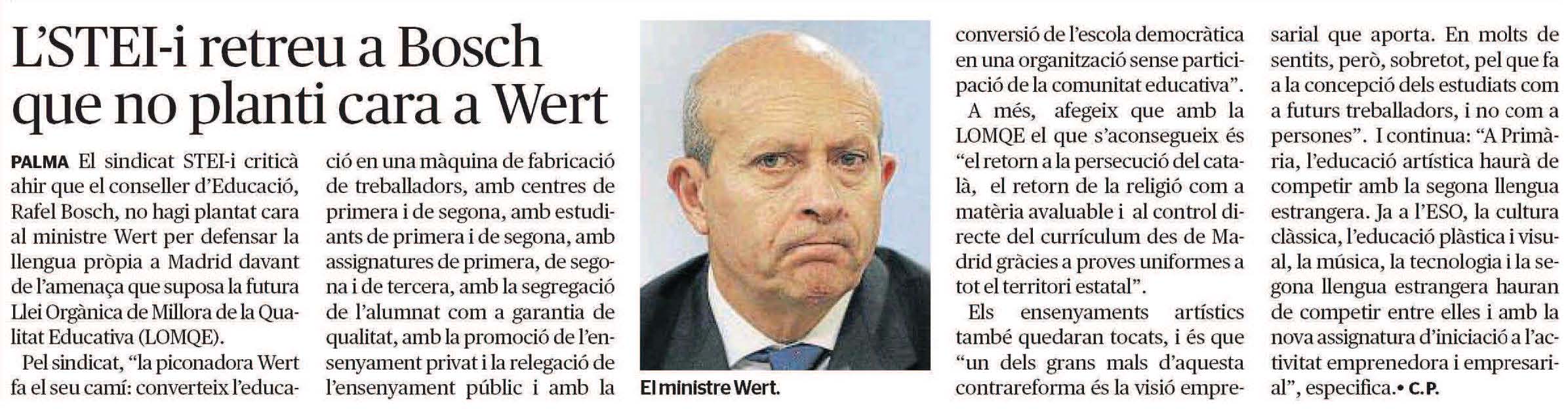 Després d’haver conegut el segon esborrany de la Llei de símbols que elabora el Govern de les Illes Balears, des de l’STEI Intersindical refermam la nostra convicció que aquesta proposta de normativa és un despropòsit majúscul, que no serveix per a res, i que no és altra cosa més que una cortina de fum per a tapar els vertaders reptes que el nostre sistema educatiu ha d’afrontar, com són les elevades xifres de fracàs escolar o l’enorme deute que encara han de percebre els centres docents.