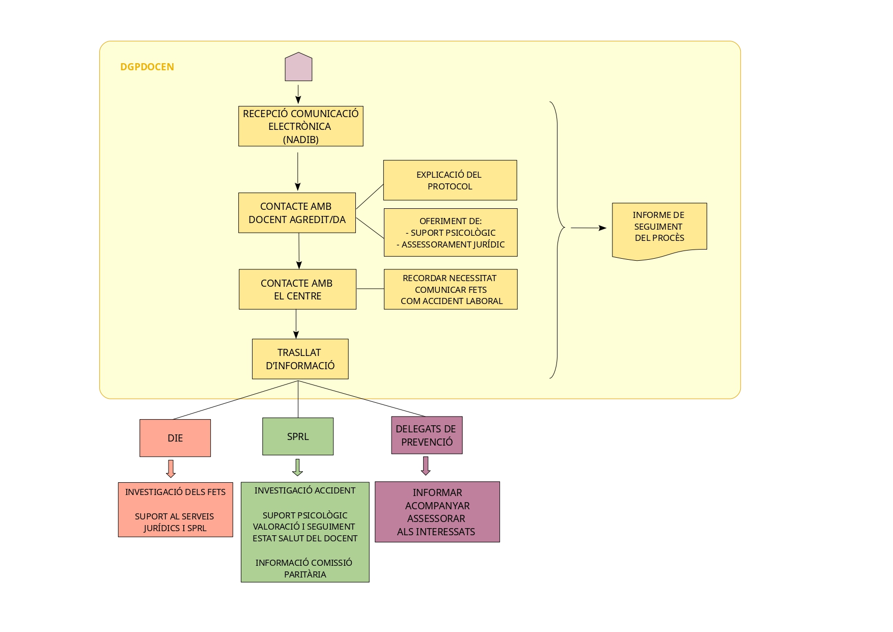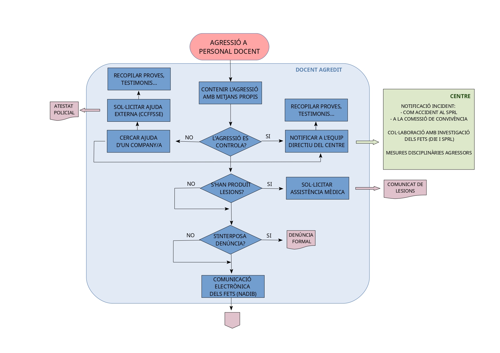 En el cas que els docents rebin agressions per part de l’alumnat, famílies i entorn, a través del NADIB, registre de notificacions d’agressions al docents de les Illes Balears, s’activa el mecanisme d'assessorament, assistència i suport al personal docent