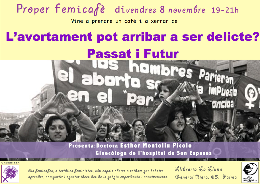 El passat dia 30 de gener es va presentar la “Plataforma pel Dret a l’Avortament” amb motiu del nou avantprojecte de la llei de l’avortament, que rebrà el nom de “Ley Orgánica de Protección de la Vida del Concebido y de los Derechos de la Mujer Embarazada” i que significa un retrocés de trenta anys en els drets de les dones i suprimeix el dret a l’avortament tal i com estava concebut a la Llei de terminis de 2010 que va aprovar el Govern d’en Zapatero. Aquesta Plataforma està integrada per moltes associacions que tenen en comú la defensa dels drets de les dones. L’STEI INTERSINDICAL i l’Associació de dones educadores també en formam part. A partir d’aquí s’estan organitzant diferents iniciatives per expresar el nostre rebuig.